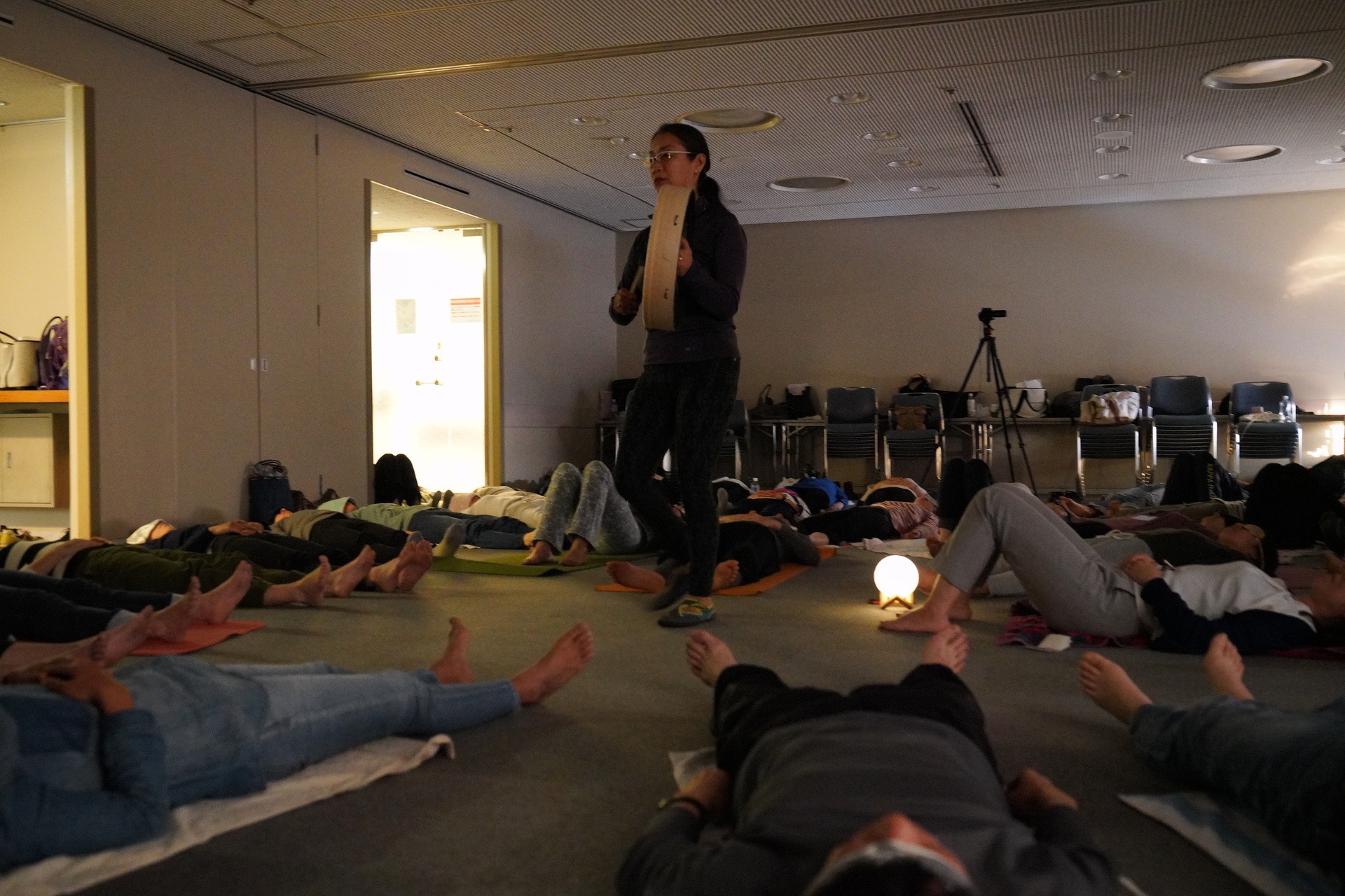 その後は、太鼓のリズムで瞑想、自分の無意識とアクセスする心の旅に出ます。